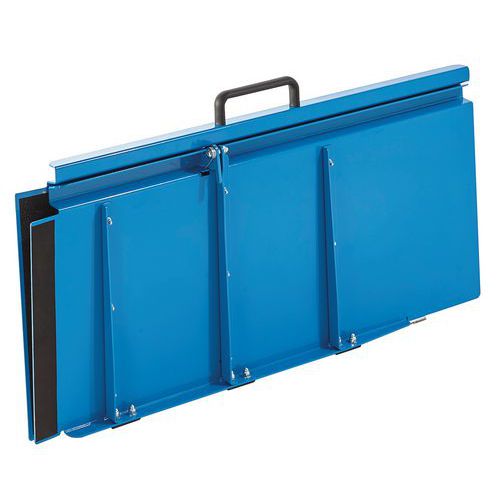Összecsukható rámpák kocsikhoz, kerekesszékekhez és egyebekhez. A felület csúszásgátló réteggel van ellátva. Praktikus tárolás az összecsukhatóságnak köszönhetően. Teherbírás (kg) : 450