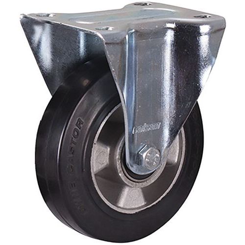 Tömör gumi szállítókerekek öntött alumínium felnire, precíziós golyóscsapágyakkal. Alacsony zajszint, alacsony gördülési ellenállás. Hőállóság -20 és +80 °C között. Keménység 72° Shore A.