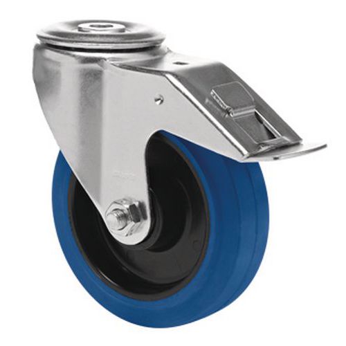 Gumi szállító kerekek középső nyílással, 100-125 mm-es átmérő, forgó, fékkel, görgős csapágyak
