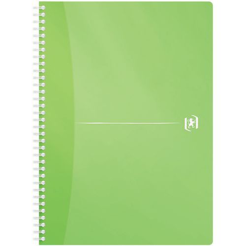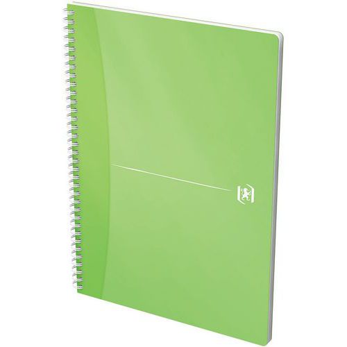 Szögletes jegyzetfüzet szegéllyel. 180 oldal, gyűrűs kötéssel. A4 formátum - szélesség: 21 cm x magasság: 29,7 cm. Kis négyzetes (5 x 5 mm) oldalak fejléccel és dupla margóval. Átlátszó polipropilén borítás. 180 oldal – Optik minőségű papír, 90 g extra fehér sima. A jegyzetfüzethez tartozik egy kivehető vonalzó az oldalak megjelöléséhez. Fehér lap a jegyzetfüzet elején. Notebook EU Ecolabel tanúsítvánnyal.