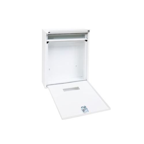 A rozsdamentes fém postaláda egyaránt alkalmas fali összeállításokhoz vagy egyenkénti elhelyezésre. méretek ma x szé x mé: 35 x 26 x 8,5 cm bedobó nyílás: elül a bedobó nyílás mérete: 23,9 x 3,1 cm zár: cilinderes (2 kulcs) felhasználási környezet: beltér tömege: 1,5 kg elölről történő ürítés, szerelési anyagokkal együtt szállítjuk
