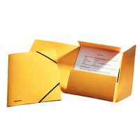 Iratmappák - 20 db-os csomagolás háromfüles iratmappák prespán kartonból A4 formátumú dokumentumok számára a füleken és a gerincen lévő nyomatok növelik a kapacitást gumival zárható egyszerű megoldás dokumentumok szállítására irodában, iskolában vagy utakon FSC tanúsítvány 20 db-os csomagolásban kapható színenként