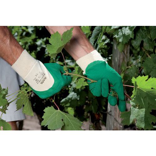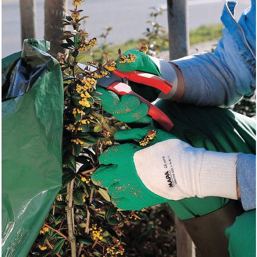 Kezelőkesztyű megerősített markolattal. Nagyon kényelmes anyag és szabás, nincs varrás a munkaterületen. Nagyon rugalmas természetes latex. Jó hőszigetelés. Különféle szabadtéri tevékenységekhez, pl. szögesdrót kezeléséhez vagy anyaggyűjtéshez. EN 420 szabvány CE