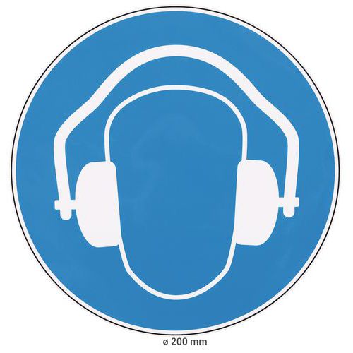 Használjon fülvédőt - matrica - Manutan Expert, átmérő 200 mm Használjon fülvédőt - matrica - Manutan Expert, átmérő 200 mm