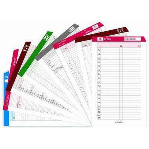 Napi terv, nagy, határidős A5 - a napi áttekintés tartalmaz 365 lapot az egyik oldalon a nap órákra osztva, a másik oldalon üres sorok. A naplóba csak körülbelül 2-3 hónap illeszthető be.