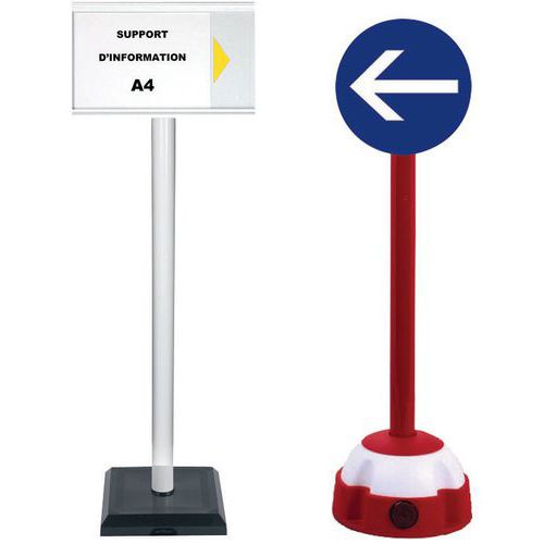 A táblával ellátott terelőoszlopok egy hagyományos oszlopot egy rögzített információs táblával kombinálnak bejelentések, utasítások vagy hirdetések céljából. Ez a kategória állítható magasságú képernyőkkel (A4, A3), levehető keretekkel a grafika cseréjéhez, valamint króm vagy matt felületű fémkeretekkel ellátott állványokat kínál. A kiváló minőségű, asztallal ellátott elválasztók nemcsak a mozgás irányát biztosítják, hanem fontos üzenetek közvetítésének lehetőségét is.