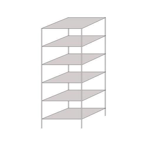 Kétoldalú irodai polcállványok iratrendezőkre, alkalmasak valamennyi irodába vagy archívumba. A 25 mm-es raszterben állítható polcok középső választó léccel rendelkeznek, mely lehetővé teszi a mappákhoz való hozzáférést mindkét oldalról. Az alapkivitelű és a hozzáépíthető polcállványok kombinációjával a beltér igényei szerinti összeállítások alakíthatók ki. Egyszerű összeszerelés kötőelemek és szerszámok nélkül is. Felületkezelés porszórásos lakkal világos szürke RAL 7035 színben vagy horganyzással. Az alap polcállvány teljes szélessége +6 mm. Irodai ágazat Szerelés szerszámok nélkül Max. polcterhelés (kg) : 150 kg