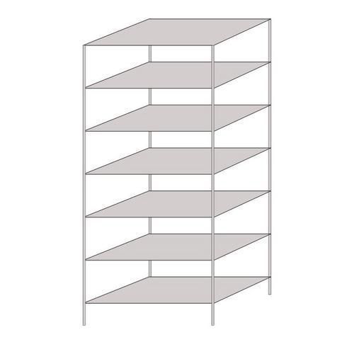 Kétoldalú irodai polcállványok iratrendezőkre, alkalmasak valamennyi irodába vagy archívumba. A 25 mm-es raszterben állítható polcok középső választó léccel rendelkeznek, mely lehetővé teszi a mappákhoz való hozzáférést mindkét oldalról. Az alapkivitelű és a hozzáépíthető polcállványok kombinációjával a beltér igényei szerinti összeállítások alakíthatók ki. Egyszerű összeszerelés kötőelemek és szerszámok nélkül is. Felületkezelés porszórásos lakkal világos szürke RAL 7035 színben vagy horganyzással. Az alap polcállvány teljes szélessége +6 mm. Szerelés szerszámok nélkül Irodai ágazat Max. polcterhelés (kg) : 150 kg