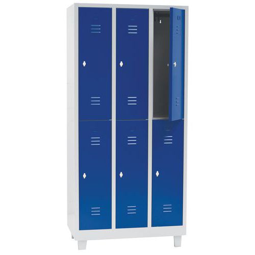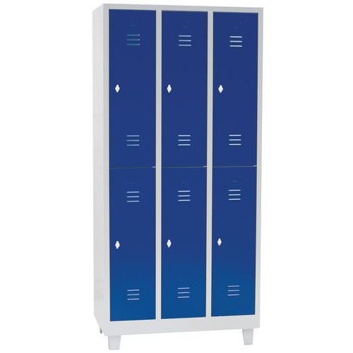 | Termék neve | Hegesztett szekrény Manutan Expert, 6 rekeszes, lábakon, zár nélkül, szürke/kék |