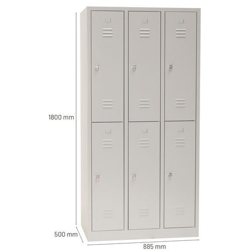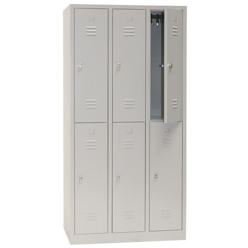 Hegesztett gardróbszekrények Manutan Expert, 6 rekeszes, lábazaton, zár nélkül
