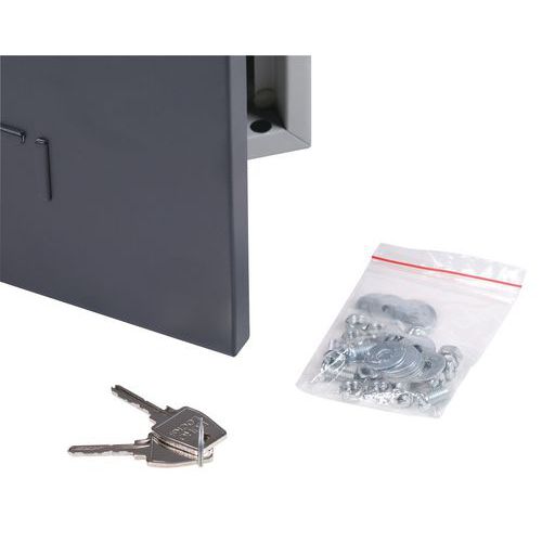 Öltözőboxok az öltözőbox-fal összeállítására. Stabil fém szerkezet, lemezvastagság: 0,7 mm, porlakkos felületkezeléssel. A boxok külön zárhatók hengerzárral. Az ajtók rejtett pántokon vannak felakasztva, és akár 180°-os szögben is nyithatók. Névtábla helyezhető el az ajtókon. A furatok a boxos öltözőfal egyszerű összeállítására szolgálnak. Szerelés : Szereléshez Lemezvastagság : 7/10e Gyártói garancia az ügyfélnek : 10 év