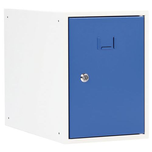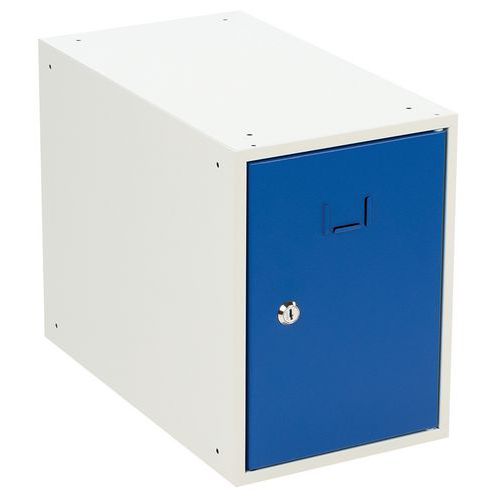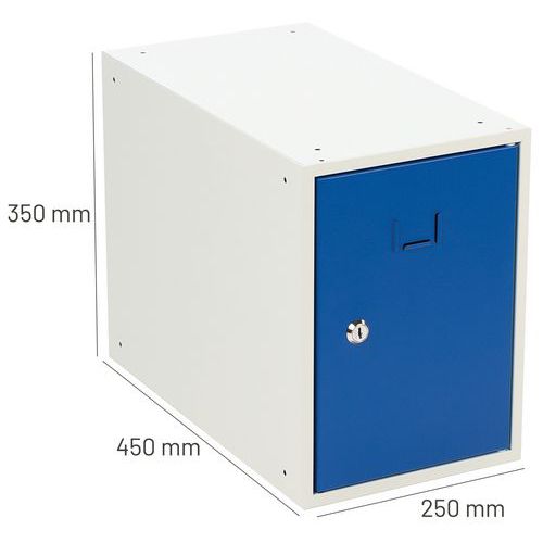 Öltözőboxok az öltözőbox-fal összeállítására. Stabil fém szerkezet, lemezvastagság: 0,7 mm, porlakkos felületkezeléssel. A boxok külön zárhatók hengerzárral. Az ajtók rejtett pántokon vannak felakasztva, és akár 180°-os szögben is nyithatók. Névtábla helyezhető el az ajtókon. A furatok a boxos öltözőfal egyszerű összeállítására szolgálnak. Lemezvastagság : 7/10e Szerelés : Szereléshez Gyártói garancia az ügyfélnek : 10 év