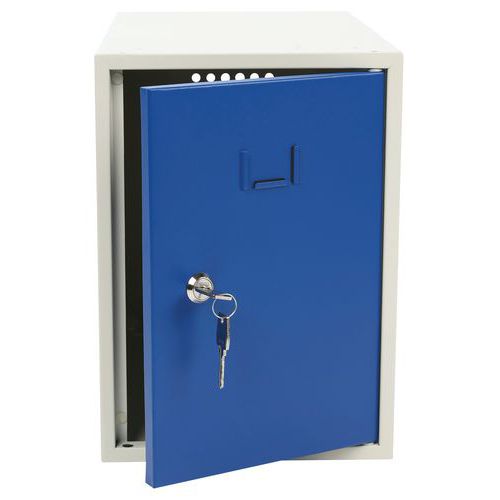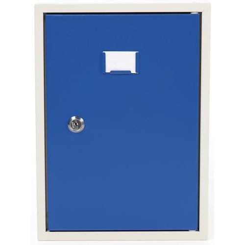 Öltözőboxok az öltözőbox-fal összeállítására. Stabil fém szerkezet, lemezvastagság: 0,7 mm, porlakkos felületkezeléssel. A boxok külön zárhatók hengerzárral. Az ajtók rejtett pántokon vannak felakasztva, és akár 180°-os szögben is nyithatók. Névtábla helyezhető el az ajtókon. A furatok a boxos öltözőfal egyszerű összeállítására szolgálnak.