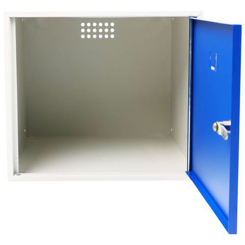 Öltözőboxok az öltözőbox-fal összeállítására. Stabil fém szerkezet, lemezvastagság: 0,7 mm, porlakkos felületkezeléssel. A boxok külön zárhatók hengerzárral. Az ajtók rejtett pántokon vannak felakasztva, és akár 180°-os szögben is nyithatók. Névtábla helyezhető el az ajtókon. A furatok a boxos öltözőfal egyszerű összeállítására szolgálnak. Szerelés : Szereléshez Lemezvastagság : 7/10e Gyártói garancia az ügyfélnek : 10 év