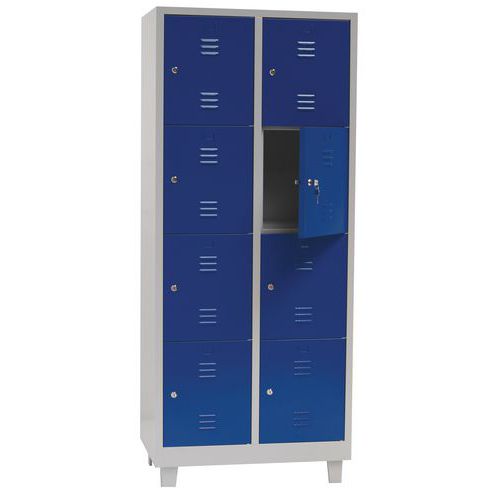 | Termék neve | Hegesztett öltözőszekrény Manutan Expert Garfield lábakon, 8 boxos, zár nélkül, szürke/kék |