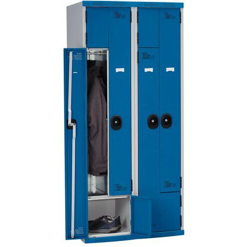 | Termék neve | Acial hegesztett öltözőszekrény, Z-ajtós, 4 rekeszes, hengerzárral, szürke/kék |