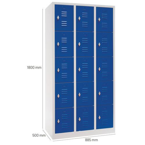 | Termék neve | Hegesztett öltözőszekrény Manutan Expert Anthony, 15 boxos, zár nélkül, szürke/kék |
