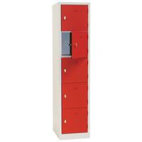 Termék neve Hegesztett öltözőszekrény Manutan Expert Liam, 5 rekeszes, forgózárral, szürke/piros