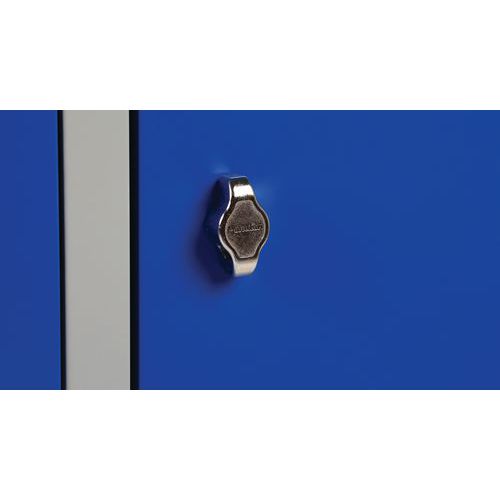 Hegesztett öltözőszekrények alkalmasak a dolgozók és látogatól személyes tárgyainak tárolására. Hatásos nedvesség elvezetés a ruhákból a szellőző nyílásokon át a boxok ajtaján. A boxok ajtói merevítettek, és belső pántokon vannak felfüggesztve. A szekrény falhoz rögzíthető előfúrt nyílásokkal a hátfalon. Névtábla elhelyezési lehetőség az ajtó felső részében.