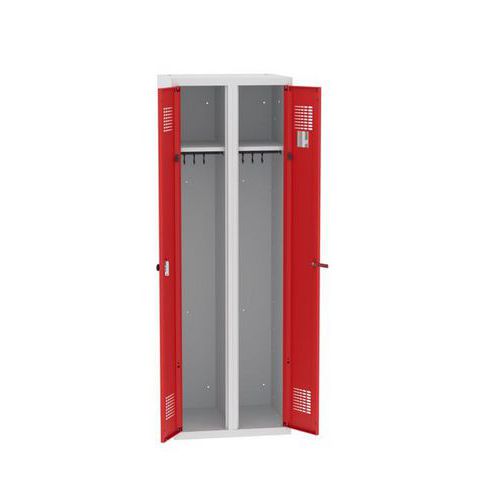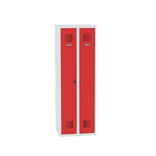 Hegesztett öltözőszekrény Rachel, 2 rekesz, szélesség 600 mm, hengerzár, szürke/piros Hegesztett öltözőszekrény Rachel, 2 rekesz, szélesség 600 mm, hengerzár, szürke/piros