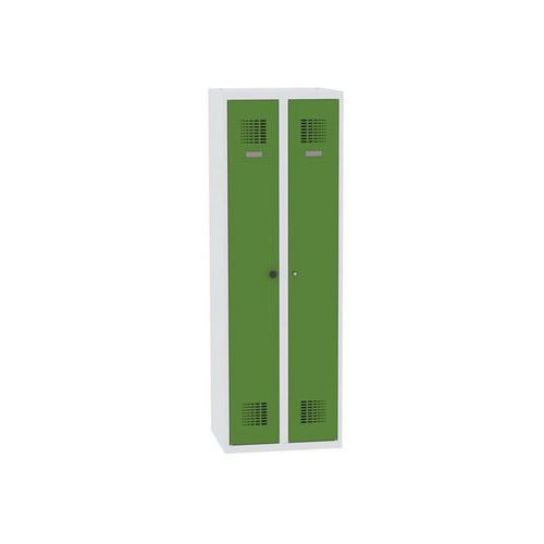 Hegesztett öltözőszekrény Rachel, 2 rekesz, szélesség 600 mm, hengerzár, szürke/zöld Hegesztett öltözőszekrény Rachel, 2 rekesz, szélesség 600 mm, hengerzár, szürke/zöld