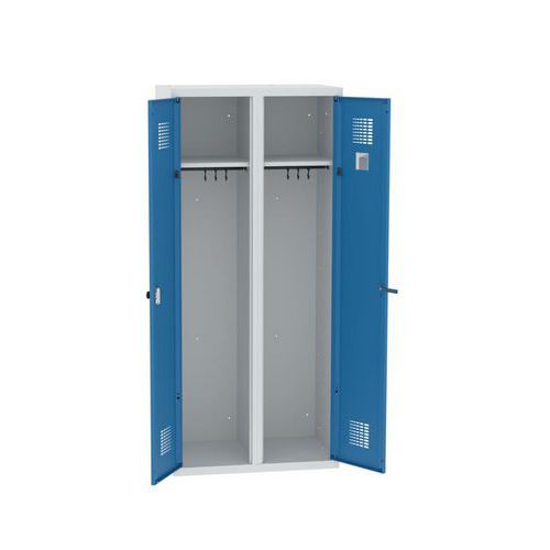 Hegesztett öltözőszekrény Rachel, 2 rekesz, szélesség 800 mm, hengerzár, szürke/kék Hegesztett öltözőszekrény Rachel, 2 rekesz, szélesség 800 mm, hengerzár, szürke/kék