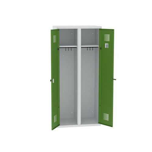 Hegesztett öltözőszekrény Rachel, 2 rekesz, szélesség 800 mm, hengerzár, szürke/zöld Hegesztett öltözőszekrény Rachel, 2 rekesz, szélesség 800 mm, hengerzár, szürke/zöld