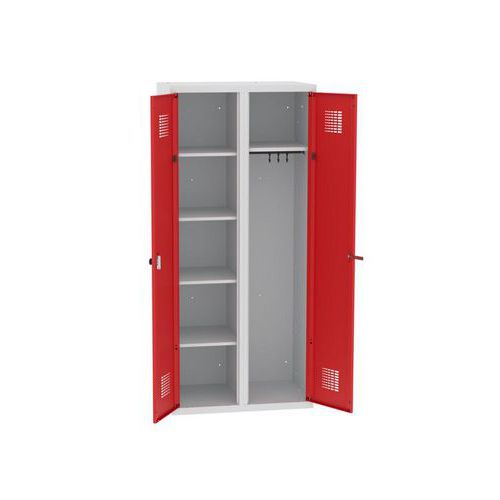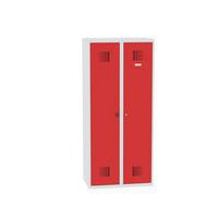 Hegesztett takarítószekrény Chloe, 2 rekesz, szélesség 800 mm, hengerzár, szürke/piros Hegesztett takarítószekrény Chloe, 2 rekesz, szélesség 800 mm, hengerzár, szürke/piros