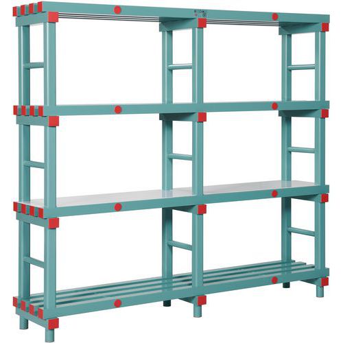 Élelmiszeripari műanyag polcállványok négy polccal, alkalmasak élelmiszerek és más termékek tárolására. A polcállványok rendkívül ellenállók a korrózióval, a sókkal, az élelmiszeripari savakkal, a nagyon alacsony és magas hőmérséklettel szemben (-40 °C-tól +80 °C-ig). Az ellenálló anyagnak és a polcállvány lejtős éleinek köszönhetően nem fenyeget csomagolás- és ruhasérülési veszély. Oszlopprofil 50 x 50 mm, lekerekített sarkokkal. A polcállványok megfelelnek a HACCP szabványainak. Könnyen összeszerelhető szerszámok használata nélkül. Polcok közötti távolság 45 cm. HACCP: Veszélyelemzés és kritikus ellenőrzőpontok rendszere (Hazard Analysis and Critical Control Points) az élelmiszergyártás egyik alapvető eszköze az élelmiszerbiztonságot veszélyeztető kockázatok hatékony megelőzésre. A HACCP rendszer létrehozása és bevezetése minden élelmiszeripari piaci szereplőnél kötelező az Európai Parlament és a Tanács 852/2004/EK rendelete alapján (2004. április 29.) az élelmiszer-higiéniáról. A HACCP tanúsítvány a bevezetett HACCP rendszer működőképességének és hatékonyságának bizonyítható igazolása.