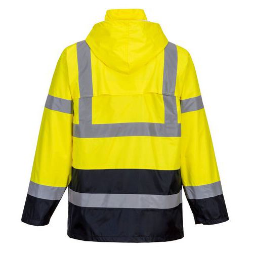 Láthatóságot biztosító vízálló könnyű és stílusos esődzseki modell. Rejtett kapucnival és szellőzőnyilásokkal készül. Kompatibilis a H444 Classic Contrast esőnadrággal.
