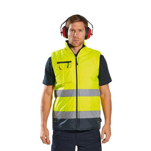Modern kéttónusú klasszikus mellény. Többfunkciós- és telefontartó zsebekkel készül. A vattabélés meleget biztosít viselőjének. CE minősítés Belső mellzseb Telefontartó zseb Dupla azonosító tartó Rádió hurok Fényvisszaverő szalag UPF 50+ Zippzáros zsebek 6 zseb Bélelt Texpel Splash 50 mosásra minősítve