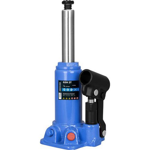 - Hidraulikus emelő 2000 kg teherbírással, érdesített ütközőfejjel, mely a menetnek köszönhetően állítható magasságú. Emelő kar az emelési magasság és a szelep kezeléséhez. Öntöttvas alapzat.