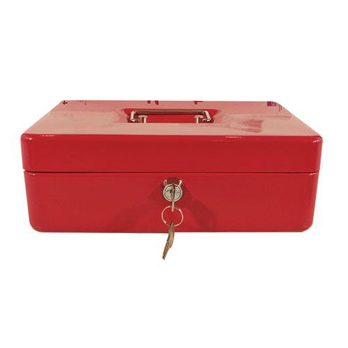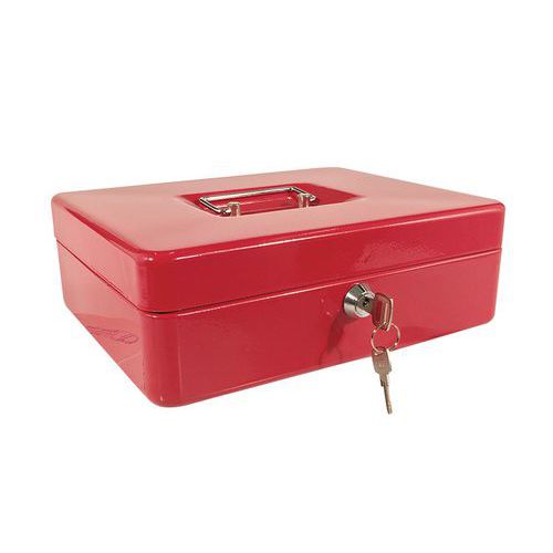 Kézi pénzkazetták különböző színváltozatban, felső fogantyúval. Kivehető elválasztóval, 4 rekesszel. színe: kék, fekete, piros anyaga: acél méretek ma x szé x mé: 85 x 250 x 200 mm zár: hengerzár (2 kulcs)