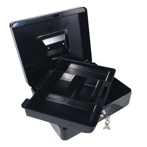 Kézi pénzkazetták különböző színváltozatban, felső fogantyúval. Kivehető elválasztóval, 4 rekesszel. színe: kék, fekete, piros anyaga: acél méretek ma x szé x mé: 85 x 250 x 200 mm zár: hengerzár (2 kulcs)