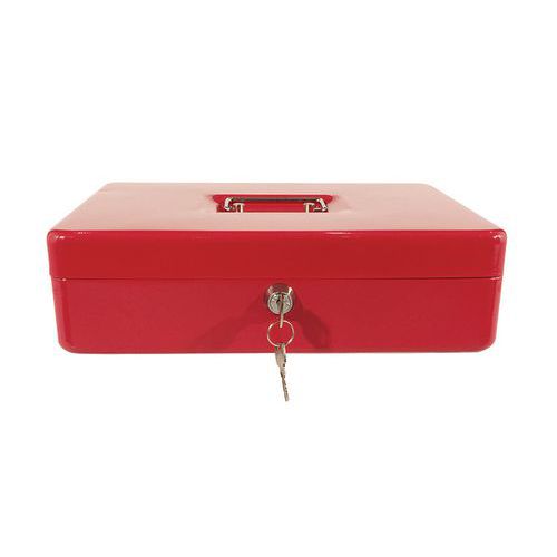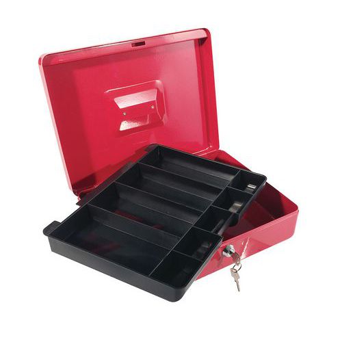 Zárható pénzkazetták több színkivitelben, fém fogantyúval. Kivehető elválasztóval, kilenc rekesszel. színe: kék, fekete, piros anyaga: acél méretek ma x szé x mé: 85 x 300 x 230 mm zár: hengerzár (2 kulcs)