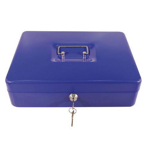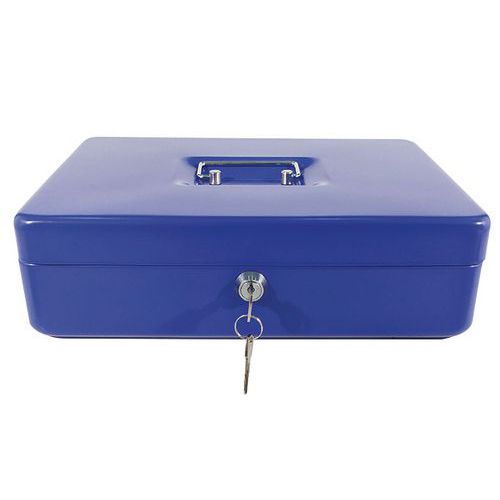 Zárható pénzkazetták több színkivitelben, fém fogantyúval. Kivehető elválasztóval, kilenc rekesszel. színe: kék, fekete, piros anyaga: acél méretek ma x szé x mé: 85 x 300 x 230 mm zár: hengerzár (2 kulcs)