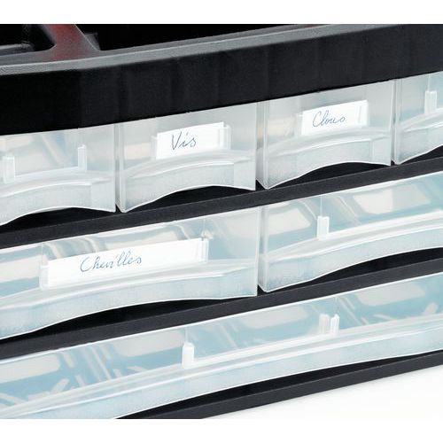 Helyezze a válaszfalakat a kívánt helyre, és jól tárolja a dolgait. Praktikus címketartókkal átlátszó fiókokon. Max. terhelés (kg) : 17 Gyártói garancia az ügyfélnek : 3 év