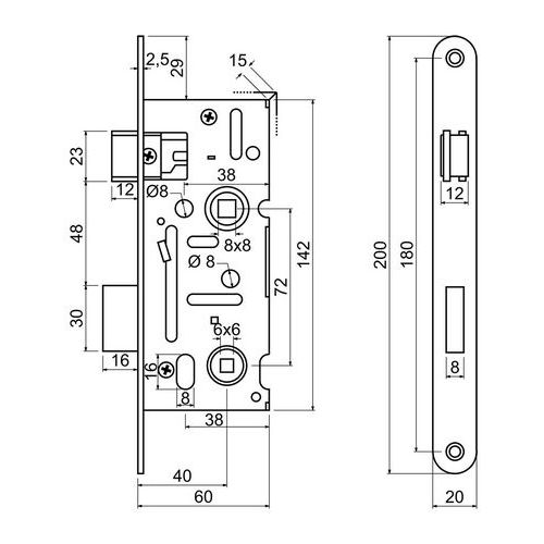 Bevésőzár WC fogantyúhoz, 20mm Bevésőzár WC fogantyúhoz, 20mm