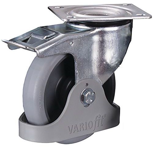 Szürke, hőre lágyuló gumi kerekek műanyag peremen, precíziós golyóscsapágyakkal. A fékezett forgó kerekek lábvédelemmel vannak felszerelve. Szürke foltmentes futófelület. Alacsony zajszint, alacsony gördülési ellenállás. Vegyi anyagokkal szembeni magas ellenállás (olajok, gázok, savak, oldószerek és szerves anyagok). Hőállóság -20 és +80 °C között, magas kopásállóság. Keménység 65° Shore A.