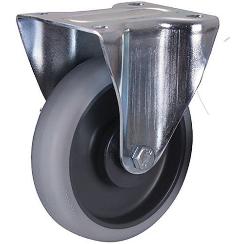 Szürke, hőre lágyuló gumi kerekek műanyag peremen, precíziós golyóscsapágyakkal. Szürke foltmentes futófelület. Alacsony zajszint, alacsony gördülési ellenállás. Vegyi anyagokkal szembeni magas ellenállás (olajok, gázok, savak, oldószerek és szerves anyagok). Hőállóság -20 és +80 °C között, magas kopásállóság. Keménység 65° Shore A.