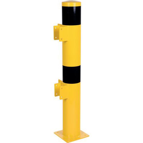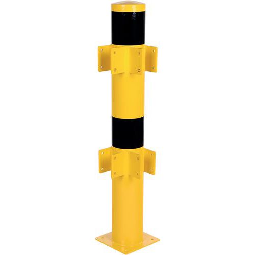 Acéloszlopok biztonsági korlátokhoz, teljes mértékben az adott helyiséghez igazíthatók. Sárga szín a jó láthatóságért. Garantált stabilitás a padlón a szerelőlemeznek köszönhetően. Horganyzott acélból készült, kültéri használatra. Könnyű telepítés.