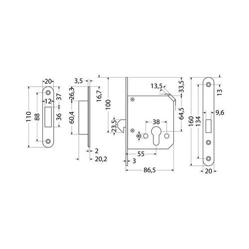 Horgos zár tolóajtókhoz és hengerbetéthez, PZ