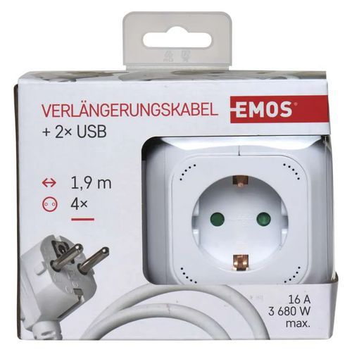 | Termék neve | Hosszabbító kábel - kocka USB-vel, 1,9 m, 4 aljzat, fehér |