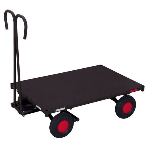 Hegesztett acél platós kocsi húzófogantyúval. Puha markolatú borítás. Automatikus első kerékfék és automatikus lágy visszatérés nyugalmi helyzetbe. Csúszásgátló felületű, vízálló, ragasztott rétegelt lemezből készült rakodófelület. Felfújható kerekek vagy tömör gumi kerekek műanyag felnin, precíziós golyóscsapágyakkal. Vázfelület-kezelés RAL skála szerinti porfestékkel. Ütés- és karcálló. Teherbírás (kg) : 700 kg