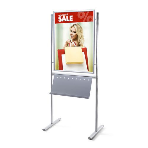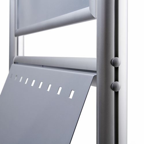 Információs oszlopok plakáttartó kerettel. Az alsó részben brosúra, katalógus és egyéb prospektus tartó pléh zseb helyezhető el. Plakáttartó hegyes élekkel és 25 mm profillal. Az EU-ban készült