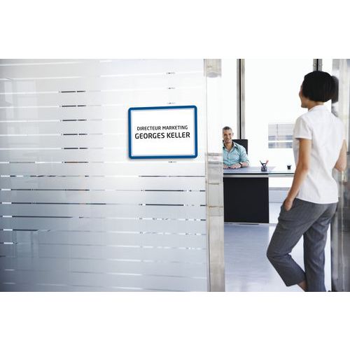 Áttekintő A4 információs táblázatok különböző színekben a fontos információk kiemeléséhez. A keretek a dokumentumok könnyű cseréjét biztosítják a lehajtható előlapnak köszönhetően. Könnyű rögzítés az öntapadó hátoldalnak köszönhetően.