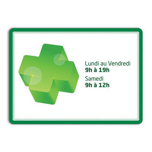Áttekintő A4 információs táblázatok különböző színekben a fontos információk kiemeléséhez. A keretek a dokumentumok könnyű cseréjét biztosítják a lehajtható előlapnak köszönhetően. Könnyű rögzítés az öntapadó hátoldalnak köszönhetően.