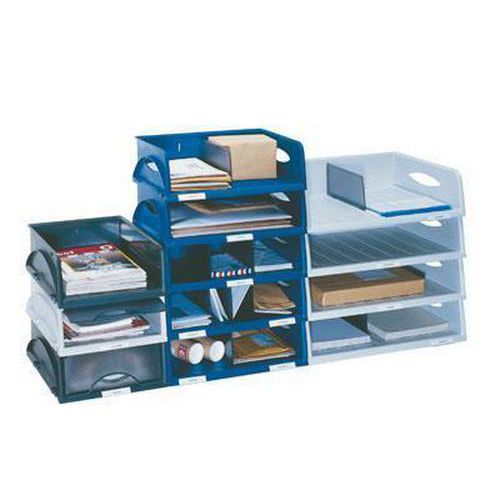 Tárolófiókok A3 méretű dokumentumokhoz két A4 méretre osztható rekesszel. A fiókok vízszintesen összeköthetők és függőlegesen egymásra rakhatók. Iratrendezésre, rendszerezésre és tárolásra irodákban, postázókban és postafiókokban, raktárakban és otthon.A csomagolás tartalma 6 db fiók.