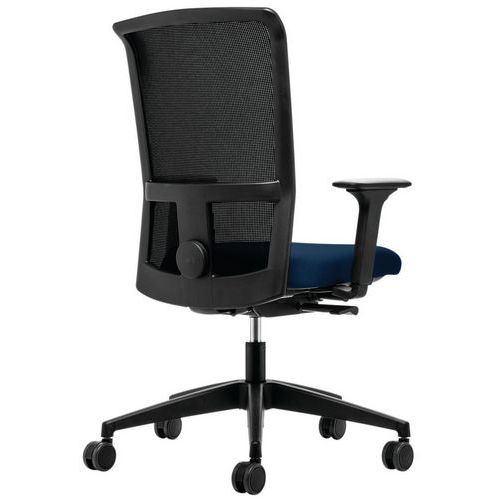 Forgó irodai szék magas párnázott háttámlával, mely elöl és hátul is rögzíthető. Szinkron mechanizmus és állítható magasságú deréktámasz. 4D állítható T-alakú kartámasz 65 mm átmérőjű kemény görgők. Állítható ülésmagasság 415-520 mm között.