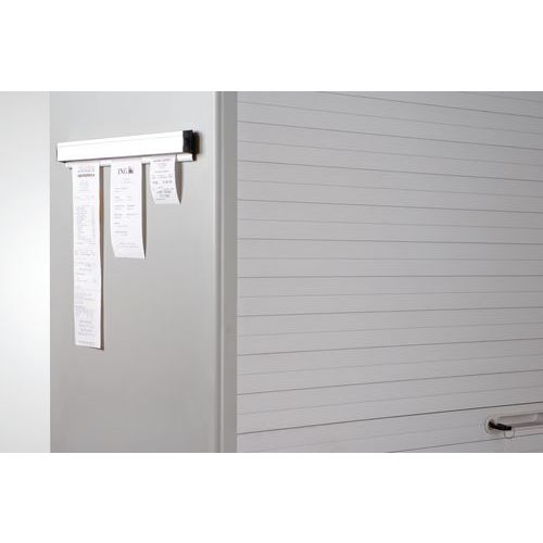 ma Grip-a-Strip mágnescsík bármilyen méretű papírdokumentumhoz. Mágneses rögzítés ideális táblákhoz és fémfelületek. Alumínium profil görgőkkel minden típusú papír hatékony megfogásához. Horony az elején a sínek személyre szabásához. A végső bővítés lehetősége.